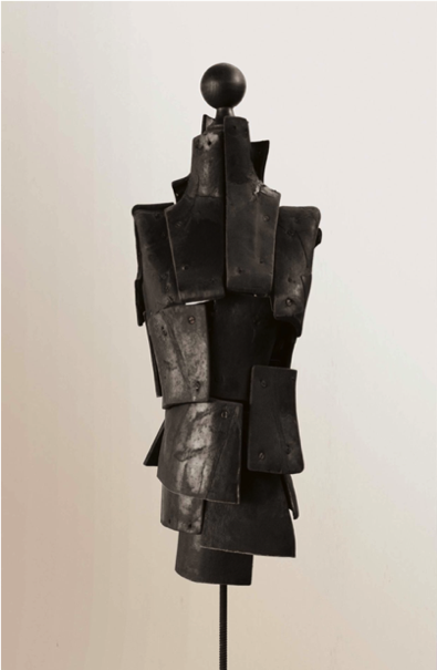Paper, metal and wood on metal stand