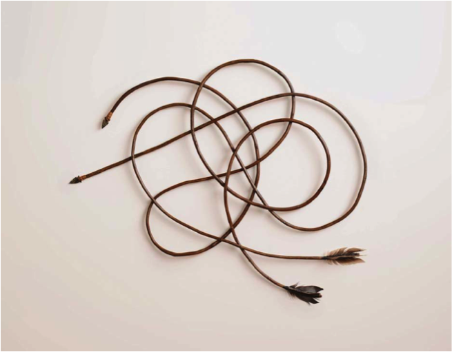 Stained wood, stone and feathers