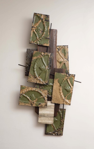 Tin, wood, latex paint, and varnish